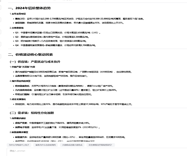 比如对于原材料价格波动原因、市场行情都可以运用Deepseek进行查询,省的自己编辑语言和写审计说明。